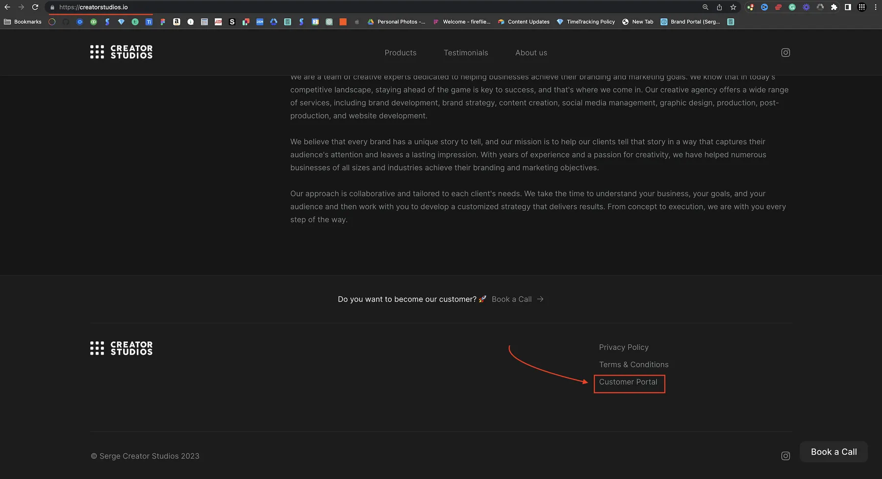 \* Please note that you can always access the Customer Portal on our website, [www.creatorstudios.io](http://www.creatorstudios.io/), by navigating to the footer section.