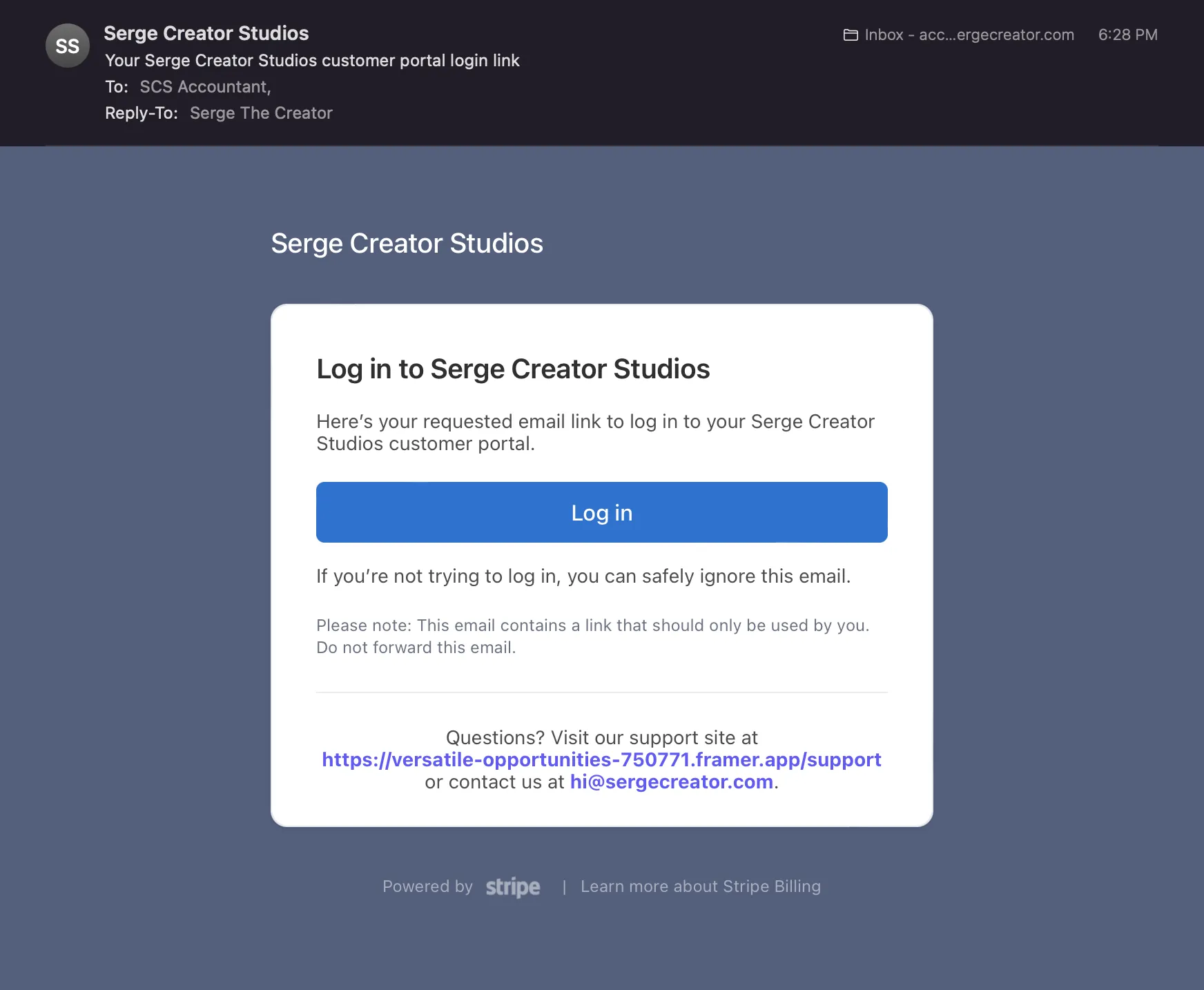2. Open your Inbox in your email, and click on Log in, and you'll be redirected to your Customer Portal